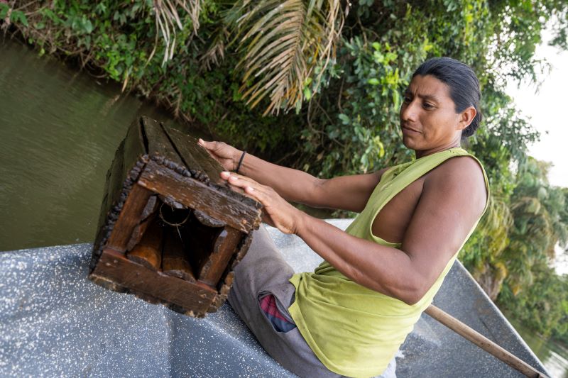 An Indigenous Ramas man lifts a crayfish trap in the Rio Indio river, San Juan de Nicaragua, Nicaragua on February 16, 2022.(Photo: Reuters/Antoine Boureau/Hans Lucas)
