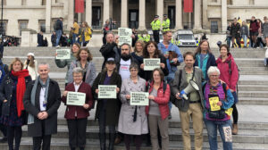 The move prompted a group of politicians and campaigners to protest in Trafalgar Square in defiance of the ban