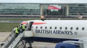 Vision impaired cyclist clambered atop BA flight, as protesters attempted to stop flights at London City Airport