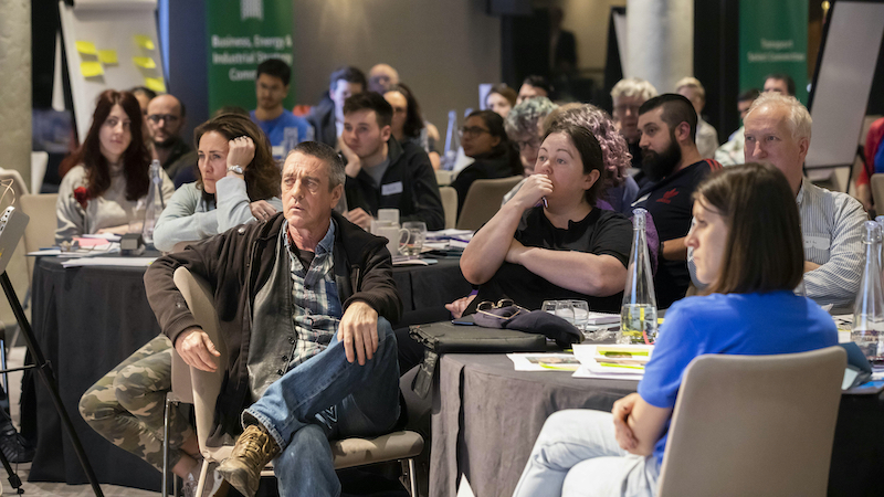 Participants broke out into several groups in an afternoon session, each tackling ways to decarbonise an area of the UK economy, including energy in the home, transport and consumption.
